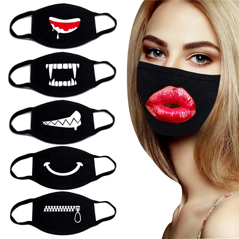 Дышащая хлопковая черная маска с милым рисунком зубов для взрослых защитная маска для рта для дома и улицы