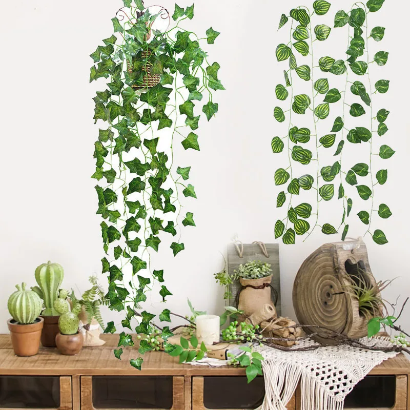 Гирлянда из ротанга 230 см с яркими искусственными растениями, зеленый винограда, лист плюща, лоза, гирлянда для домашнего сада, вечеринки, свадьбы, настенного декора