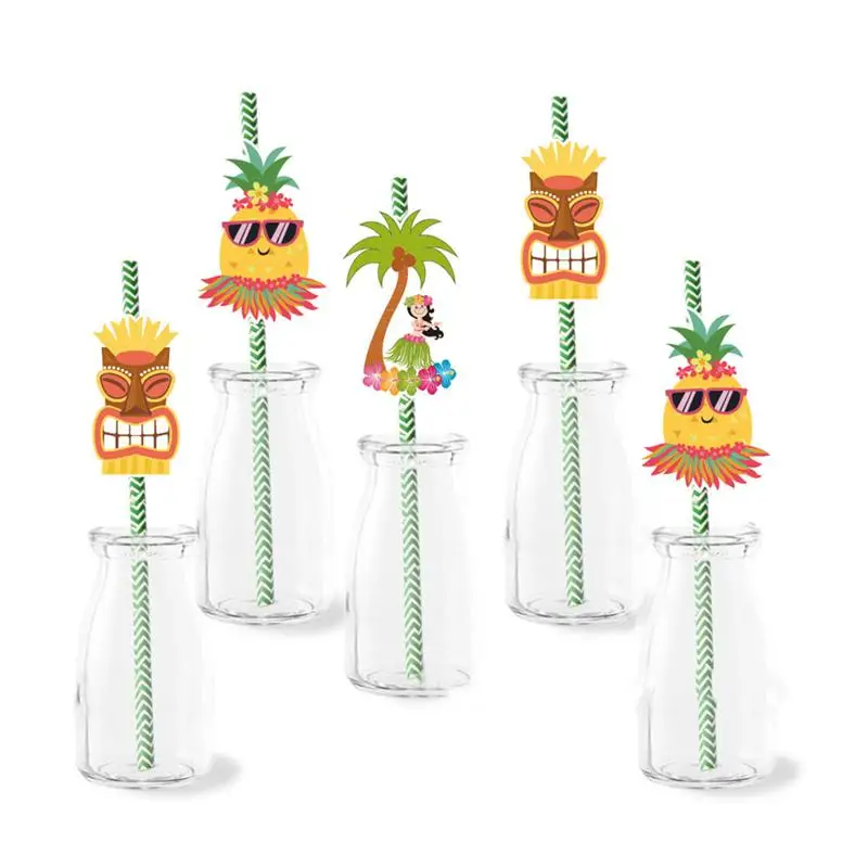 Многоразовая соломинка для питья, тропическая бумажная соломинка для питья, набор для Гавайского лета, пляжа, бассейна, бара, украшения для ...