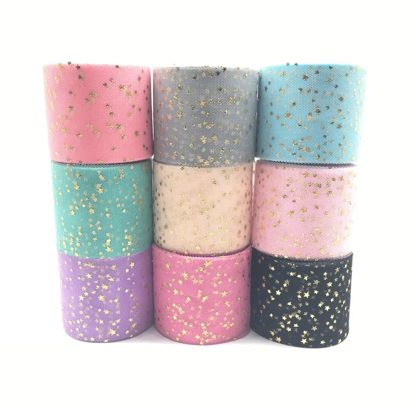 20 ярдов/партия ширина 6 см Золотая Звезда пятно блеск с принтом тюль сетка рулон катушки пачка Pom мягкий сквин Тюль творчество, рукоделие, Декор
