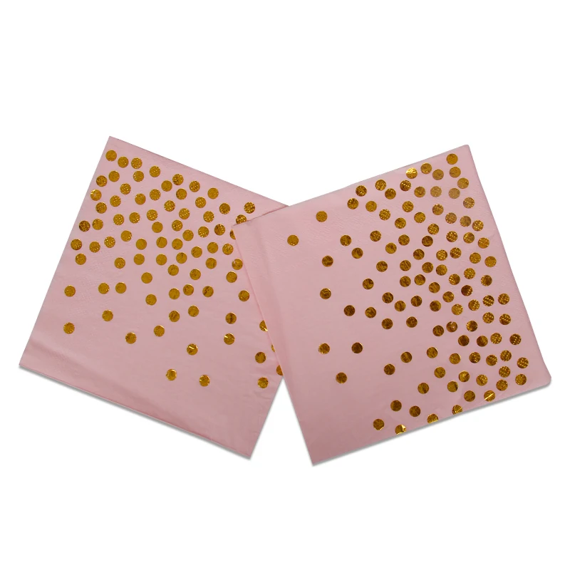 Одноразовые салфетки/стаканчики/тарелки для свадебного детского душа в горошек розового и золотого цвета, декор для дня рождения, одноразовая посуда, бумажная салфетка