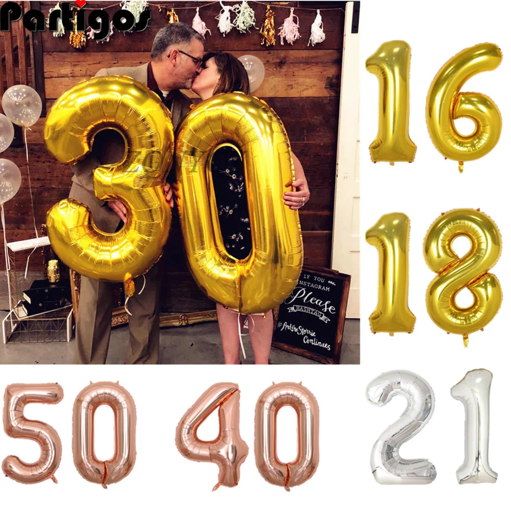 40 дюймов золотой шар баннер 16, 18, 21, 30, 40, 50 день рождения украшение для взрослых день рождения письмо номер фольги шар Дети Globos