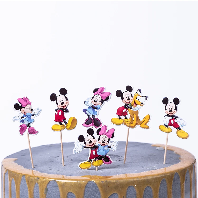 24 шт., Мультяшные Микки, Минни Маус, топперы для кексов, детские товары для дня рождения, свадебного торта, украшения с флагом, подарок для дев...