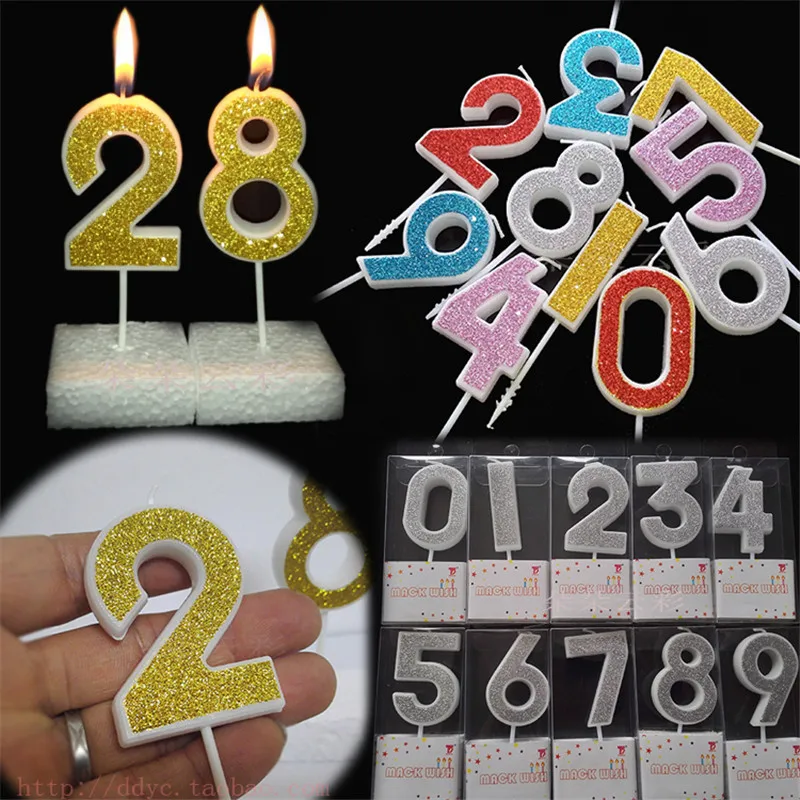 Золотой, серебряный, розовый, синий, Красная корона, свечи на день рождения, свадебные праздники, украшение для торта (0-9) 1 штука
