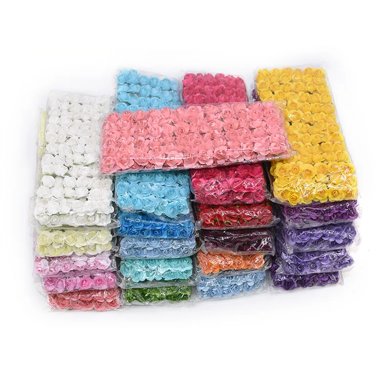 144 шт./лот, Мини бумажные цветы, искусственные розы, букет, скрапбукинг, сделай сам, для украшения свадьбы, Свадебный веночек, розочка