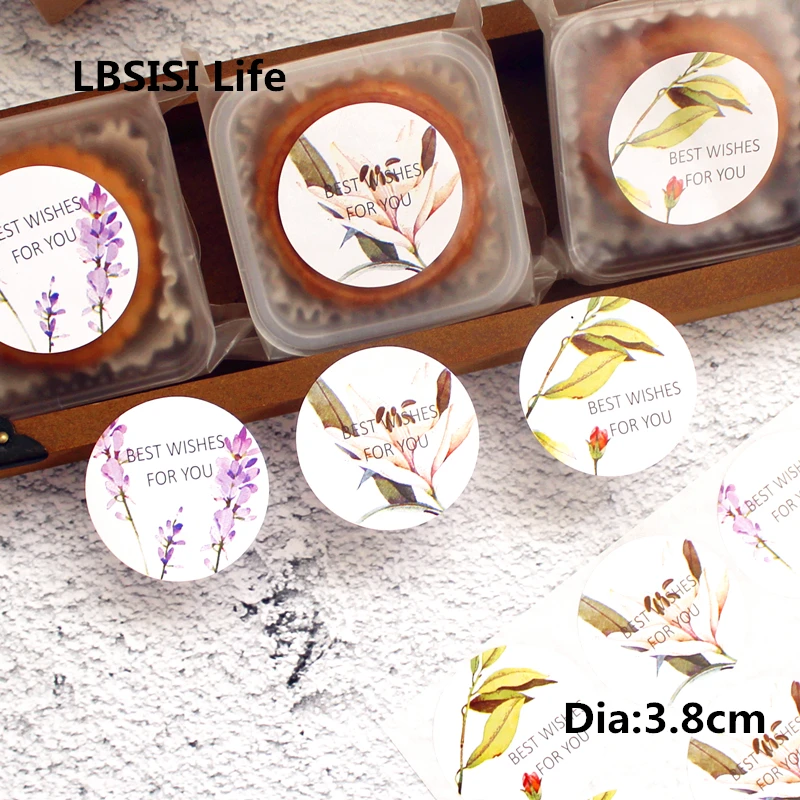 LBSISI Life 108 шт наилучшие пожелания для вас цветок печать бумажные наклейки для конфет печенья упаковка мешок коробка домашнего украшения для ...