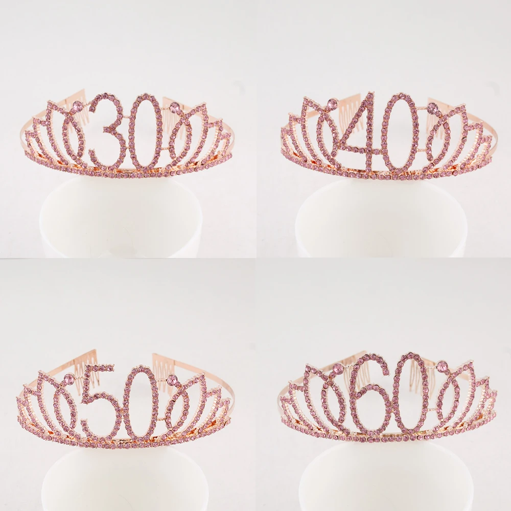 Happy 30th 40th 50th 60th 70th розовая тиара на день рождения корона со стразами на день рождения