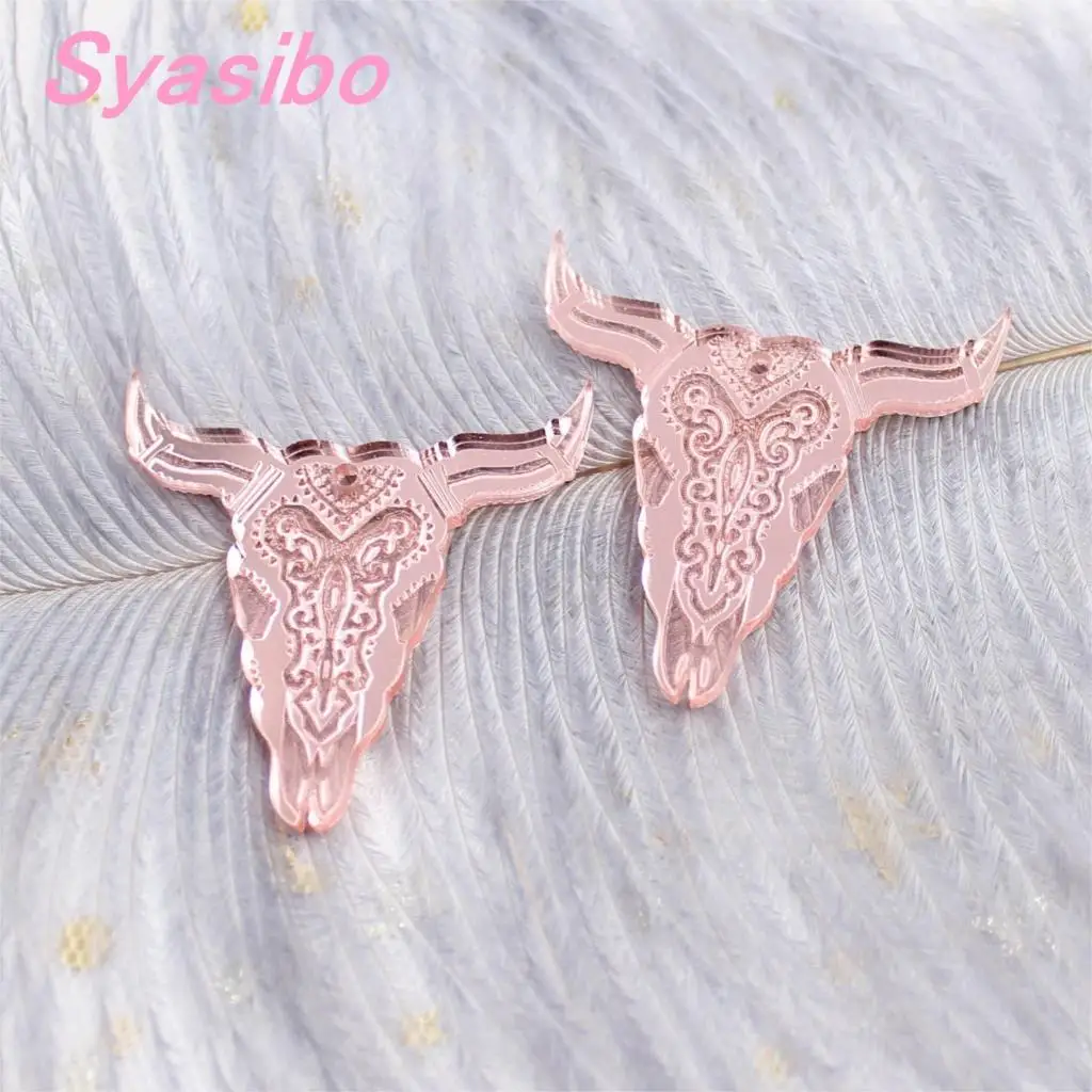 38 мм/50 мм акриловые с черепом быка серьги украшения на Хэллоуин золото и серебро зеркало лазерный вырез 2,0 "-AC1422KO