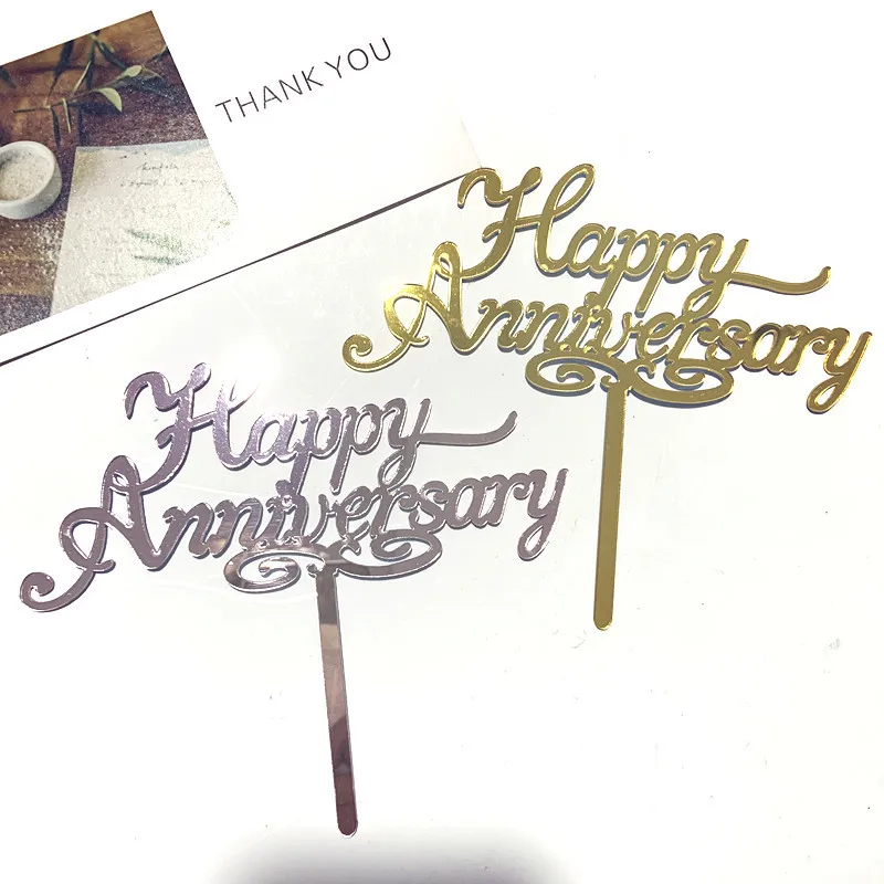 Happy Юбилей акрил топперы на свадебный торт Юбилей вечерние аксессуары для украшения торта Золотой розовое зеркало акрил флажки для торта