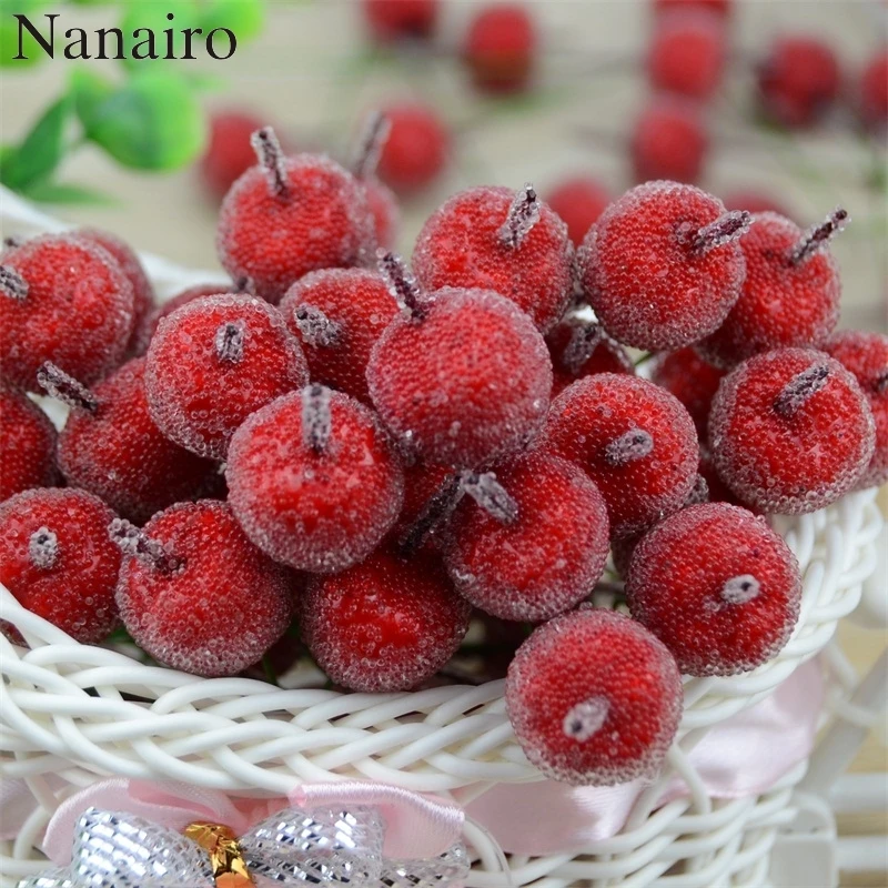 10 шт. см 2 см мини Apple поддельные фрукты стекло ягоды искусственный гранат красный букет цветов вишневого дерева тычинки Рождество декоратив...