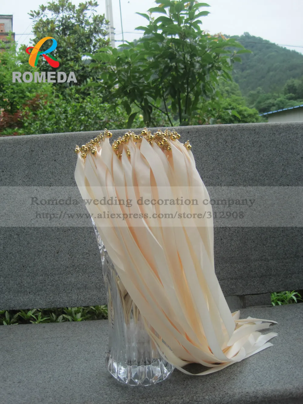 Бесплатная доставка-(50 шт./лот) Стиль крем лентой свадебные палочки с золотой колокол свадебные ленты, палки, ленты вертя растяжки