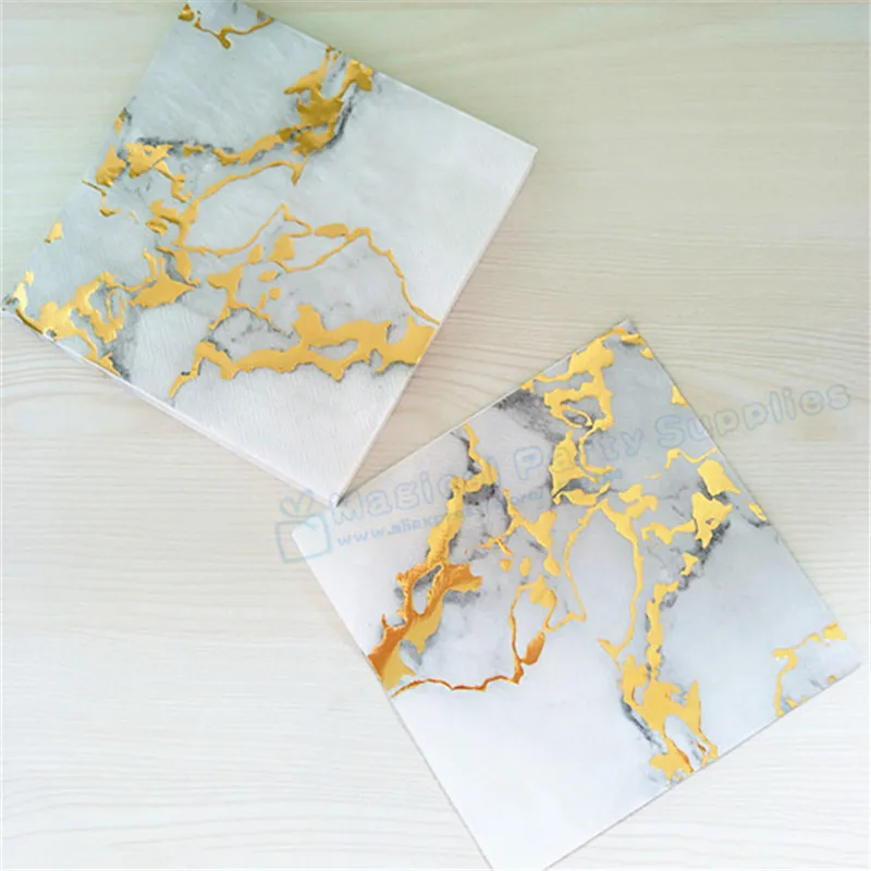Бесплатная доставка 100 шт серый мрамор с золотой фольгой бумажные салфетки для дня рождения свадьбы и Помолвки вечерние салфетки для салфеток