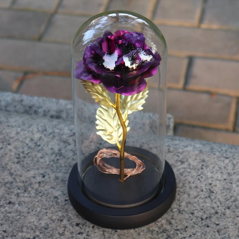 Искусственный Золотой фольга розы и светодиодный светильник в стеклянном куполе на деревянной основе лучший подарок для женщин