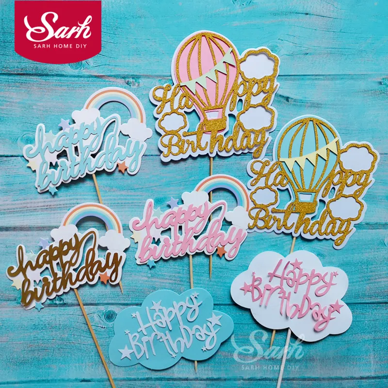 Biling розовый сине белые воздушный шар Радуга облако звезда лента Торт Топпер вечерние для украшения партии десерт прекрасные подарки