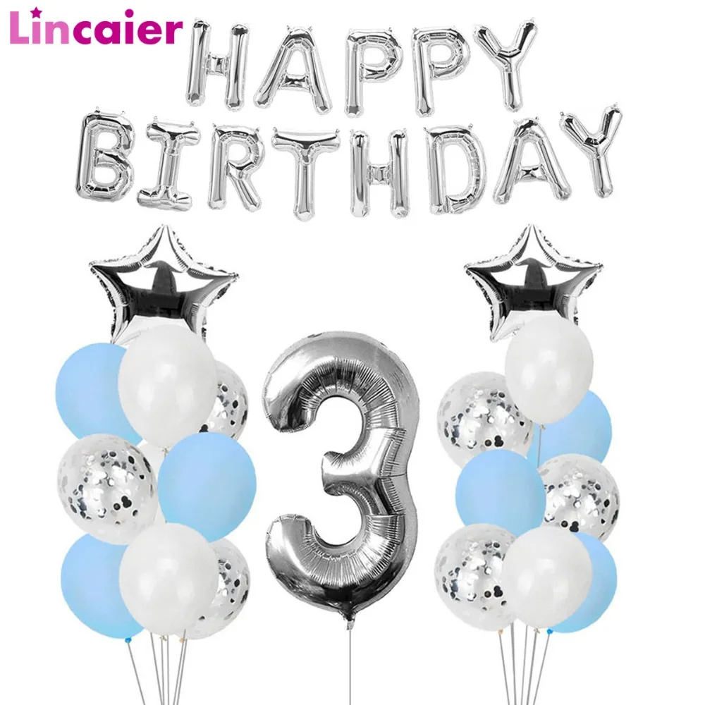3 года с днем рождения воздушные шары вечерние украшения 3rd я три баннер для мальчиков третий день рождения поставки