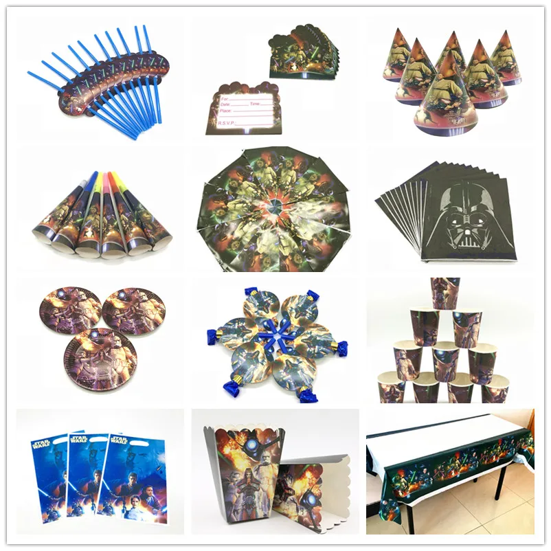 Звездные войны тема Дети День Рождения мультфильм бумажный стаканчик пластины баннер колпачок для салфеток шнурок подарочная сумка Семья ...