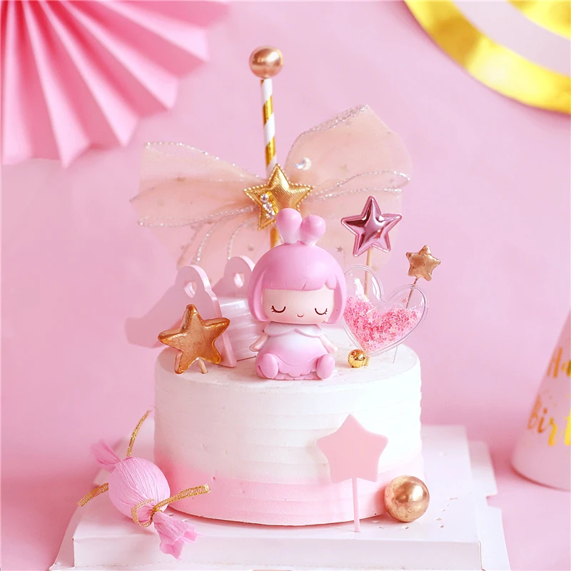 Розовые заячьи ушки для девочек, топпер для торта, для вечеринки в честь Дня рождения, украшения, пряжа, бант, звезда, детский десерт, принадлежности для выпечки, подарки для любви