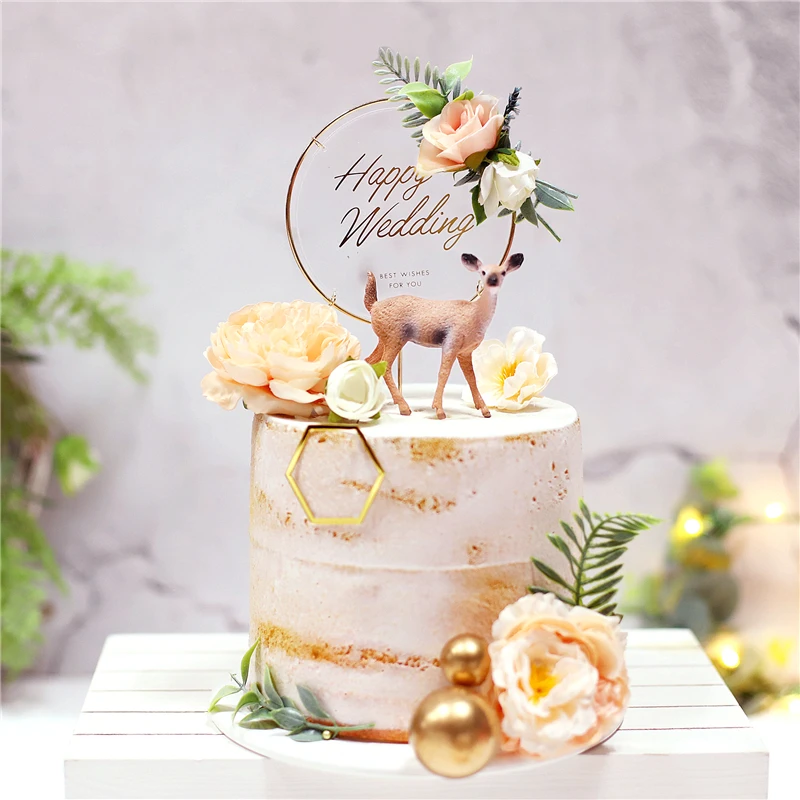 Свадебные украшения для торта на крючке, вечерние принадлежности, нежный цветок, олень, декор для выпечки, Свадебный десерт, подарки для люб...