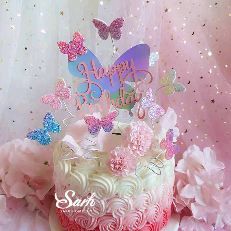 Biling красочные лазерная бабочка "с днем рождения" торт Топпер десерт украшения для день рождения прекрасные подарки