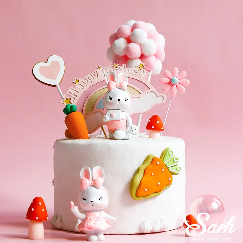 Розовое платье Декор кролика морковь венок Арка Торт Топперы с днем рождения для ребенка душ приспособление для выпечки Фея любовь подарок