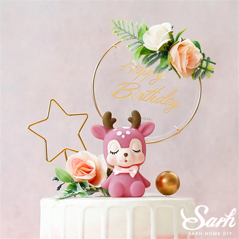 Розовый Сика олень Торт Топперы искусственный цветок декор ко дню рождения для вечерние поставки для свадьбы или «нулевого дня рождения» ю...