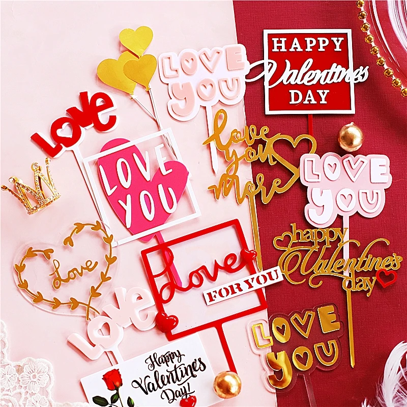 Акриловые украшения для торта на день рождения, украшения на день рождения, десерт, принадлежности для выпечки, подарки на день Святого Валентина