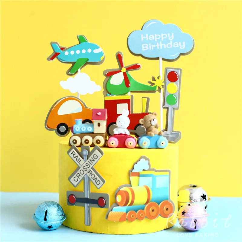 Шикарный Поезд Самолет знак торт Топпер С Днем Рождения кролик украшения в виде поезда для феи детский день вечерние поставки выпечки подар...