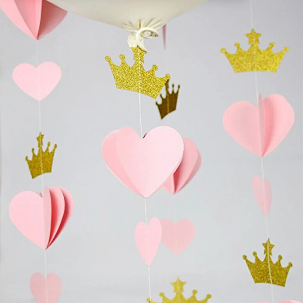 1 шт., в форме сердца + короны, подвесная бумага, гирлянда, пентаграмма, Цветочная Гирлянда для DIY, домашний декор, товары для вечеринок, Свадебный бумажный баннер