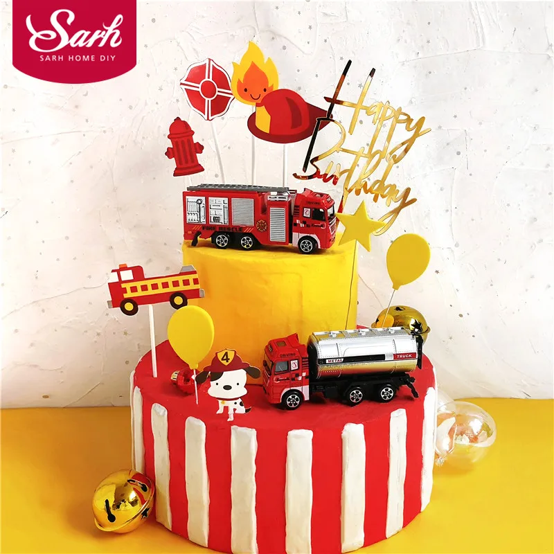 Пожарная лестница грузовик бак для воды украшение для детской день счастливым украшение для именинного торта вечерние поставки прекрасные...