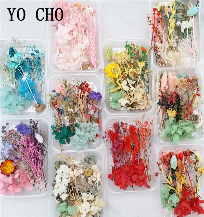 YO CHO 1 коробка микс настоящий свежий сушеный цветок натуральный цветочный для художественного ремесла Скрапбукинг Смола ювелирное ремесло ...