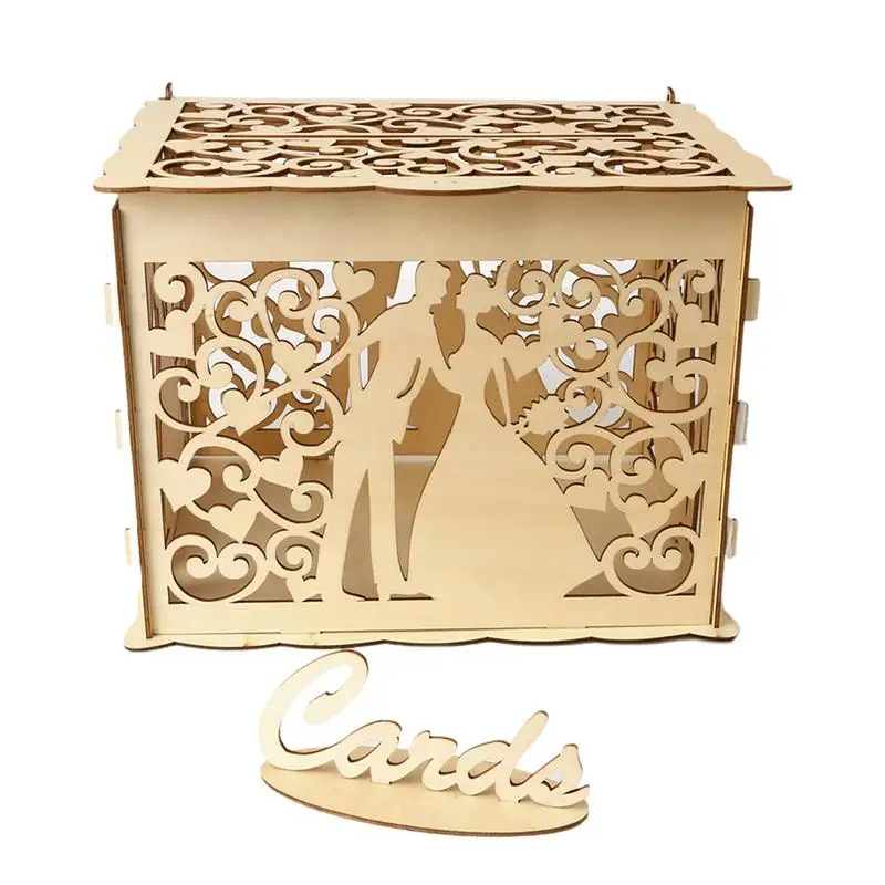 Новинка 2019 деревянная коробка свадебные принадлежности DIY пара олень птица цветочный узор сетка визитная карточка деревянная коробка