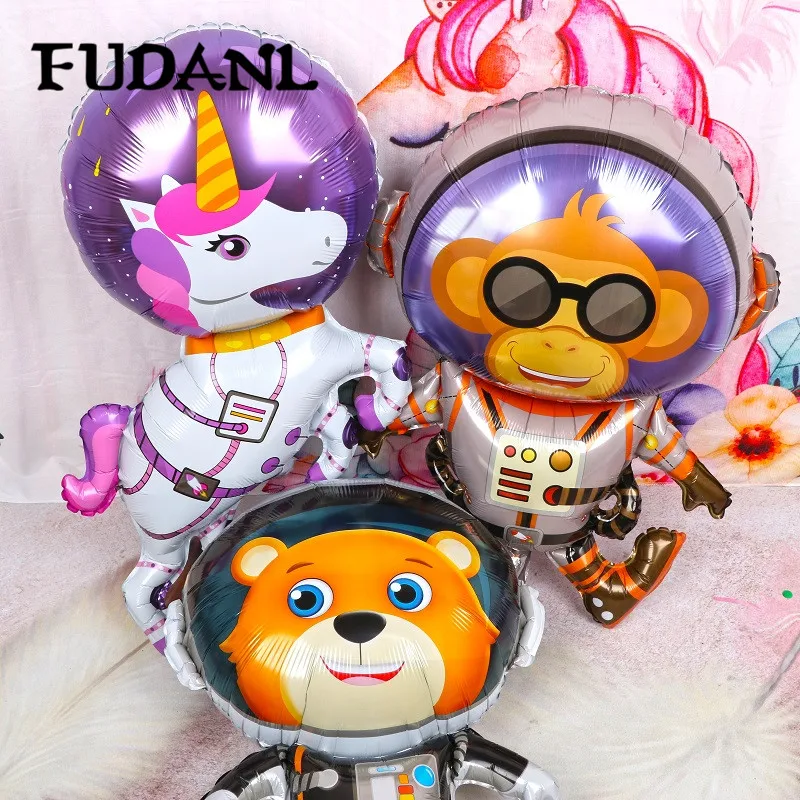 Астронавт космическая тема животные вечерние украшения мультфильм Медведь обезьяна фольгированный воздушный шар-единорог детский душ Ден...