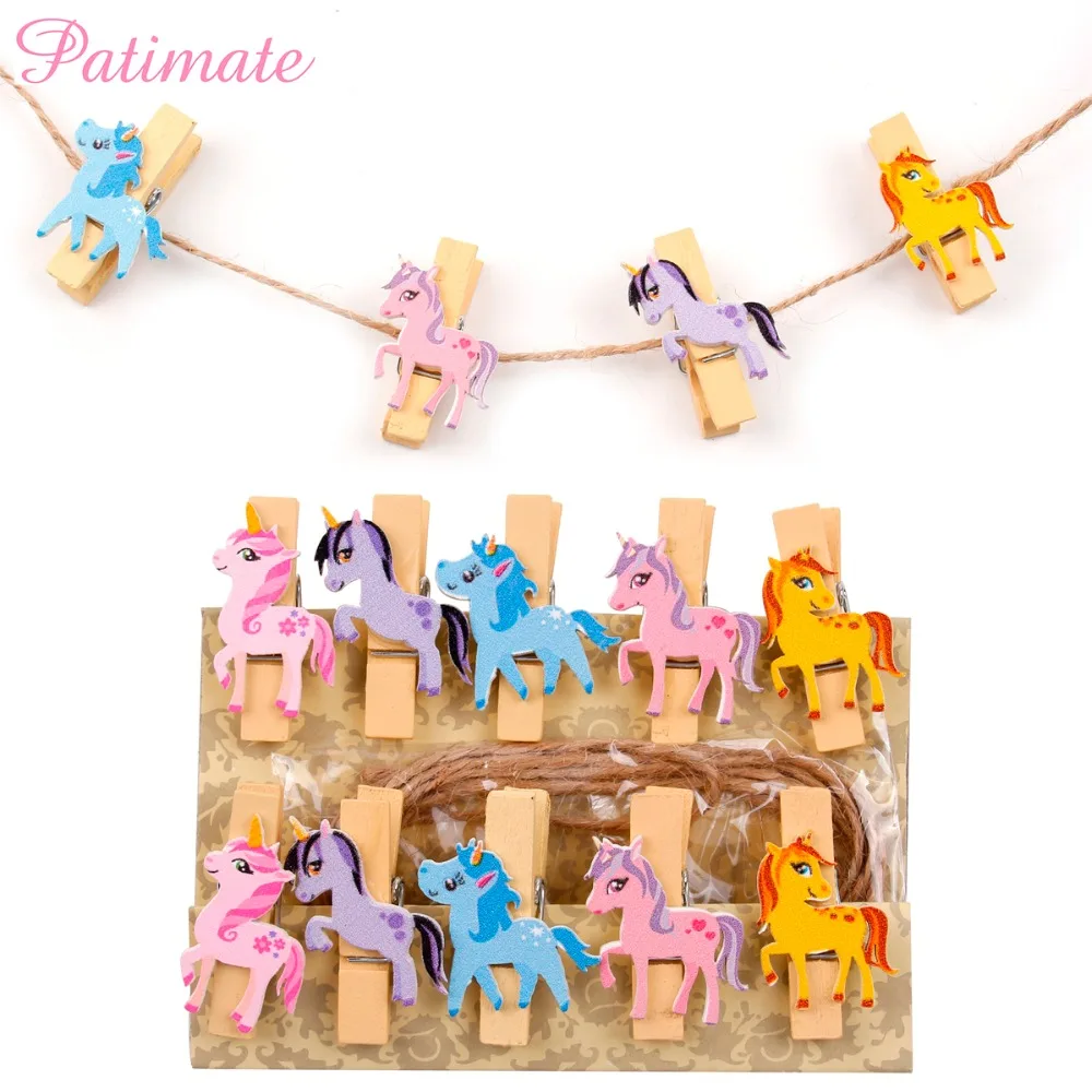 PATIMATE деревянный фото клип Единорог День рождения украшение милый DIY фото клип Единорог партия поддерживает поставки подарок на день рождения