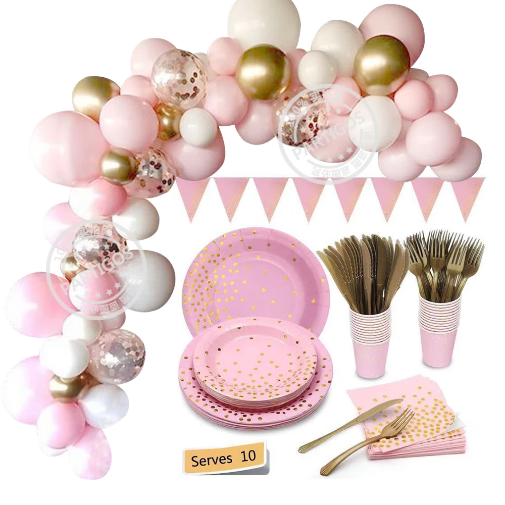Розовое золото точка одноразовая посуда вечерние украшения Воздушные шары-гирлянды арочный комплект детский душ День Рождения украшения принадлежности