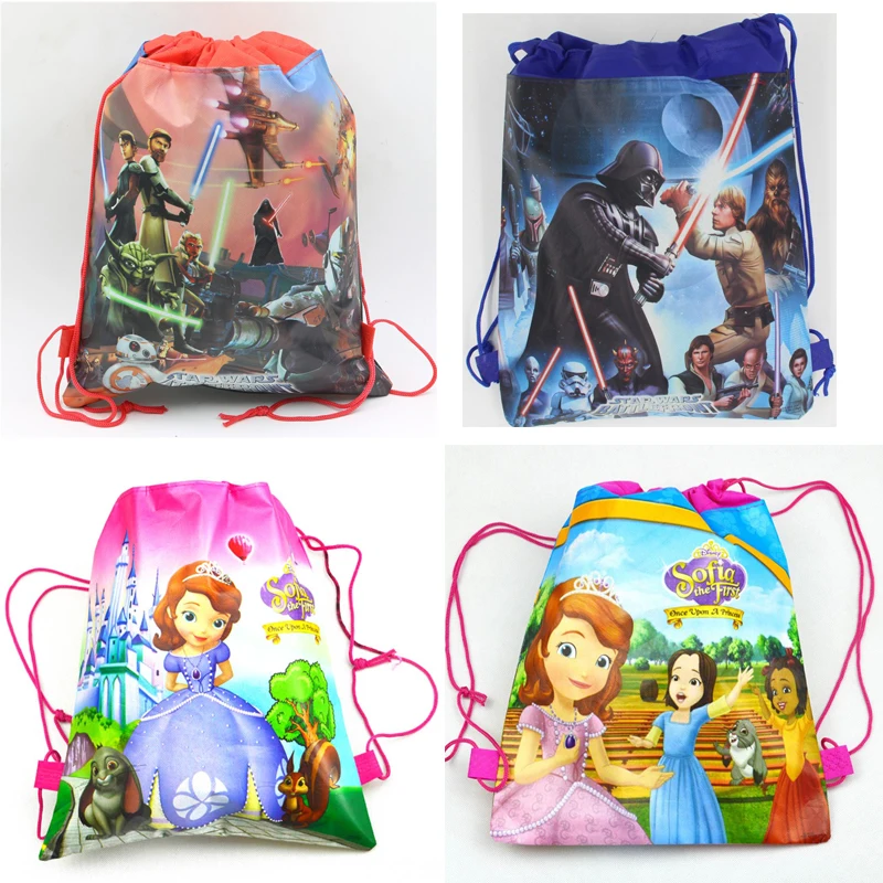 Принцесса тематика-София нетканый рюкзак на день рождения украшения для детей с принтом «Звездные войны» Подарочный мешок на шнурке Baby Shower ...