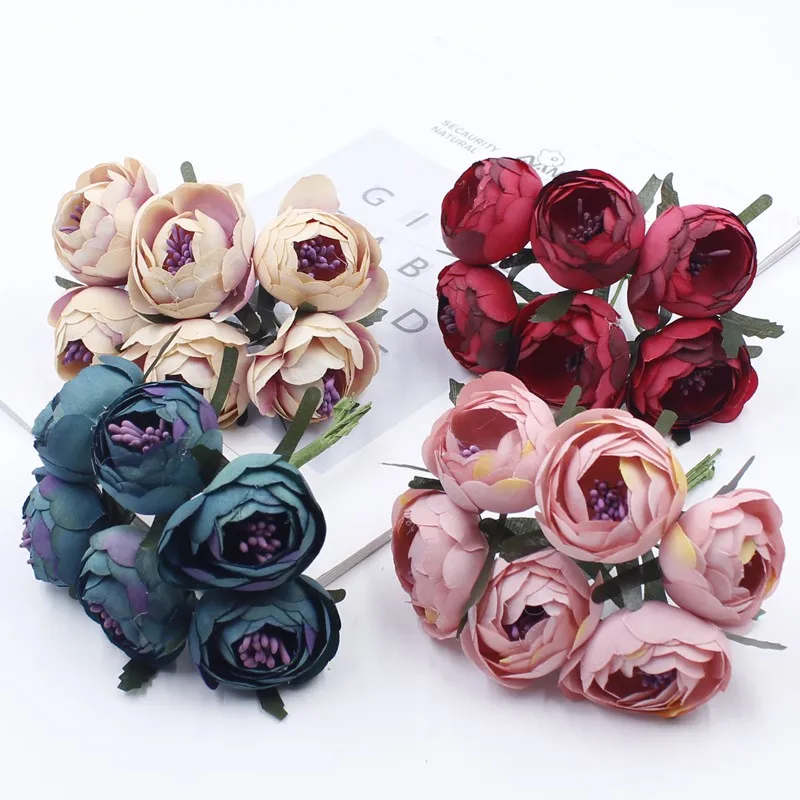 6 шт./лот Искусственный Роуз Шелковый цветок цветы пиона Букеты Свадебные Свадебный Декор розовыми цветами для DIY Скрапбукинг