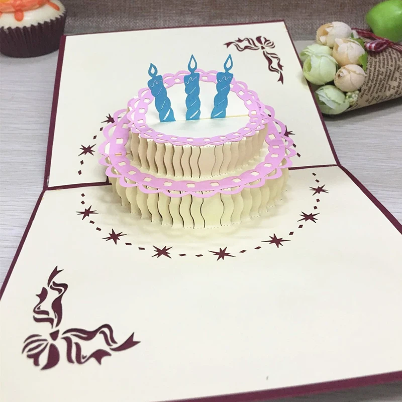 1 шт. торт ко дню рождения 3D ручной работы всплывающие лазерная резка Почтовые открытки поздравительные подарочные карты Крафт-Киригами пус...
