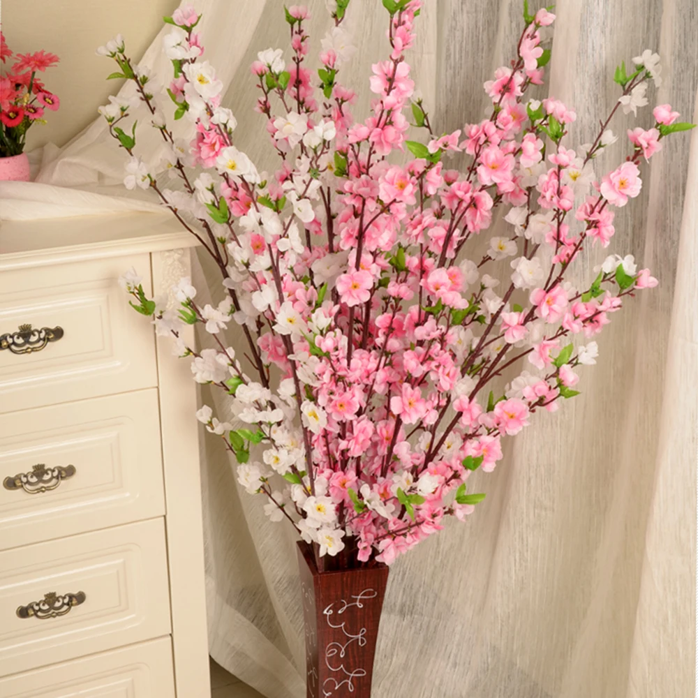 Пластиковый персиковый букет 128 см искусственная вишня Весенняя Слива Персиковый Цветок ветка Шелковый цветок для дома Свадебные Декоративные цветы