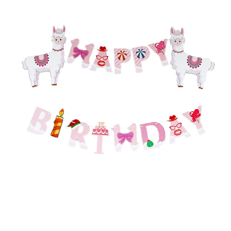 Llama оформление вечеринки счастливые Баннеры для дня рождения розовый Альпака фольги Воздушные шары Дети день рождения, детский душ лама фот...