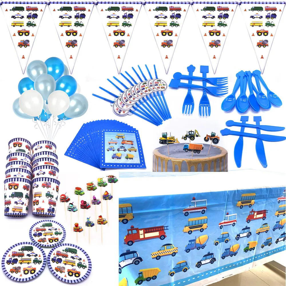 Спрос среди детей строительный инженерный транспорт тематическая вечеринка на день рождения поставки тарелки чашки флаги салфетки однора...