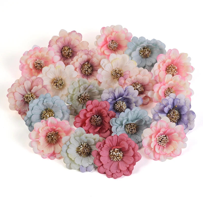 50 шт., 2 см, многоцветные Искусственные цветы с ромашками, мини шелковые цветы для венка, скрапбукинга, украшения для дома, свадьбы