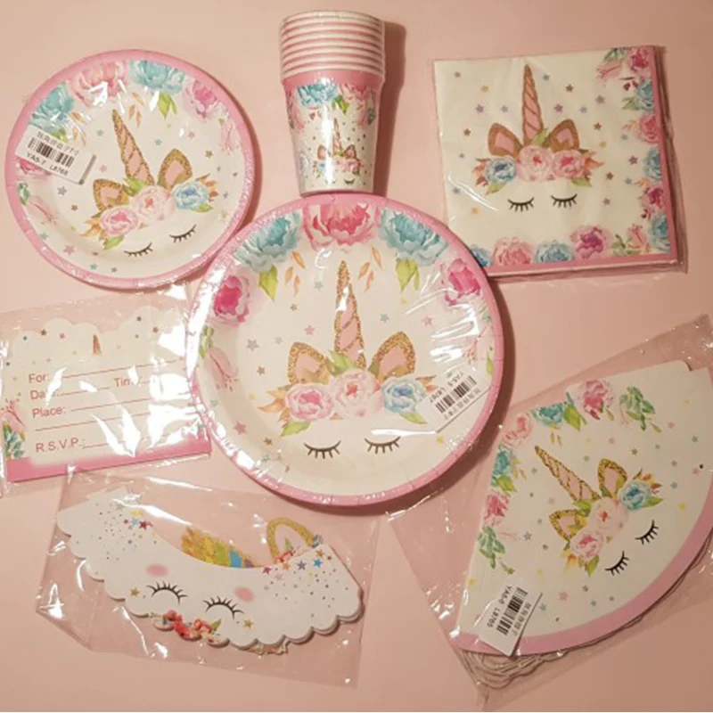 Единорог вечерние украшения принадлежности для рождения детей милый бумажные тарелки стаканчики надувные, шар реквизит для свадебных фото...