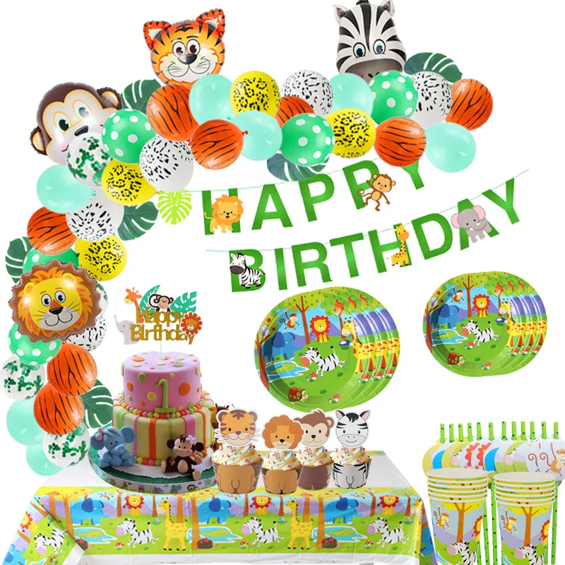 Джунгли вечерние воздушный шар из фольги в виде животного баннером сафари на день рождения вечерние украшения детские одноразовые вечерние столовые приборы