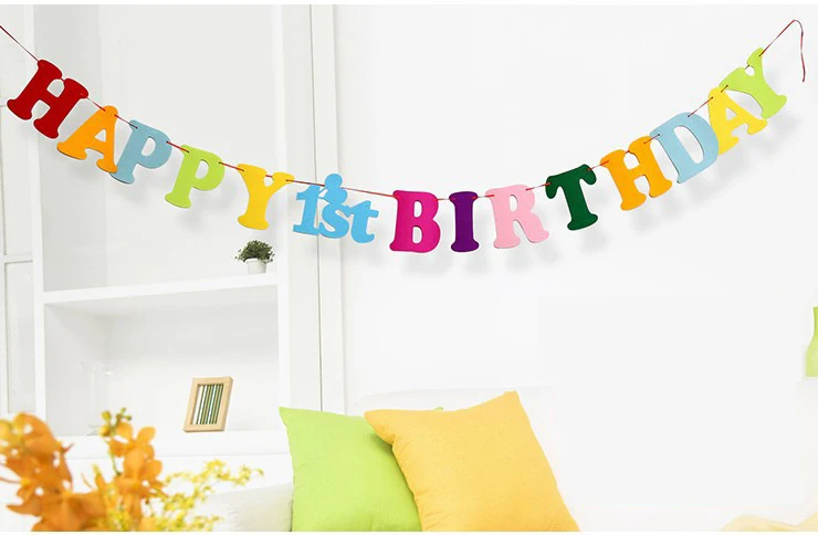 2,5 метров вечерние флаги 1'st первый день рождения нетканые ткани Вымпел гирлянда с колокольчиками баннер из ткани для флагов для украшения DIY...