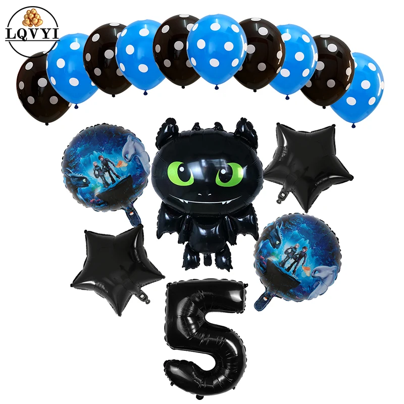 14 шт., Как приручить дракона, шары, 30 дюймов, черное количество, дракон, Беззубик, шар на день рождения, вечеринка для маленьких мальчиков, тем...