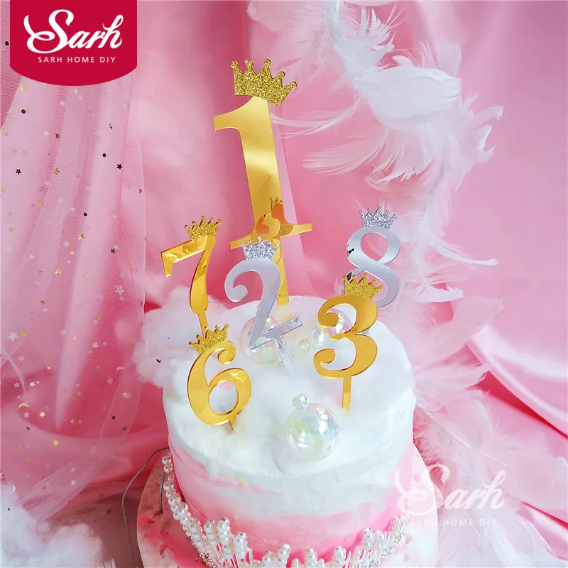 Золотая Серебряная корона номер "0-9" Торт Топперы с днем рождения блестящее украшение для принадлежности для юбилейной вечеринки прекрасны...