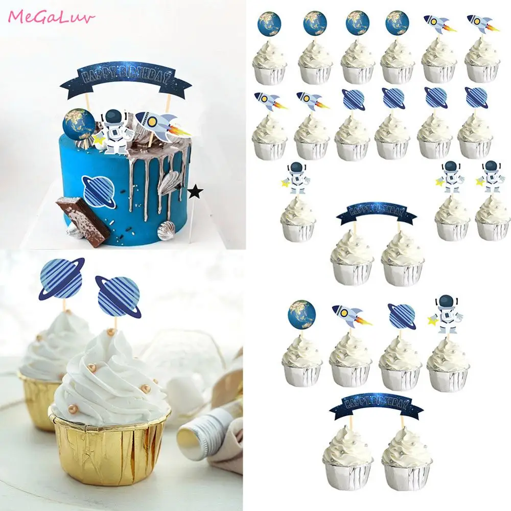 Астронавт тема кекс Топпер ракета спутниковые флажки для торта День рождения принадлежности торт декоративные вечерние украшения
