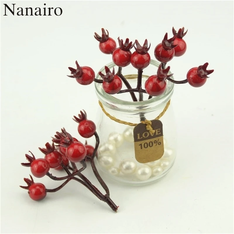 10 шт./90 головок мини искусственный жемчуг гранат фрукты маленькие Ягоды Искусственные цветы красная вишня тычинка Свадьба Рождество декоративные