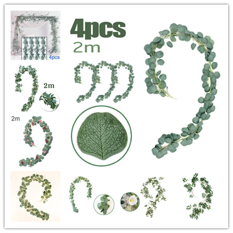 4 шт. 2 м искусственный эвкалипт листья лоза ротанга Шелковый цветок домашний Свадебный декор