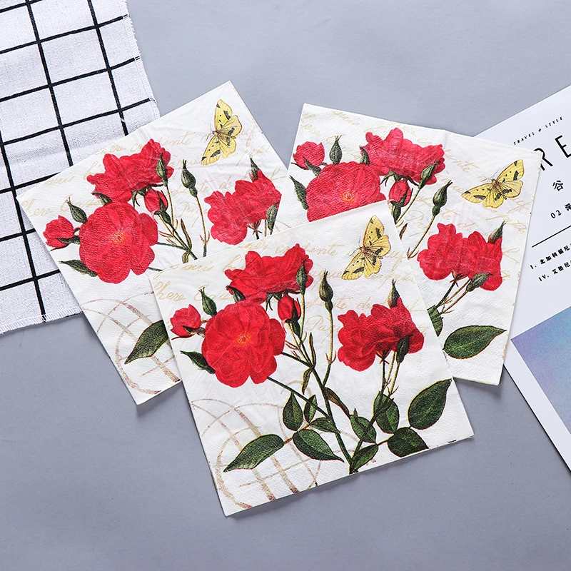 20 шт Красная роза цветок бабочка бумажная салфетка винтажные Декупажные матрацы для свадьбы cafeshop украшения для вечеринок